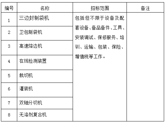 江苏大亚印务有限公司制袋分切项目招标公告