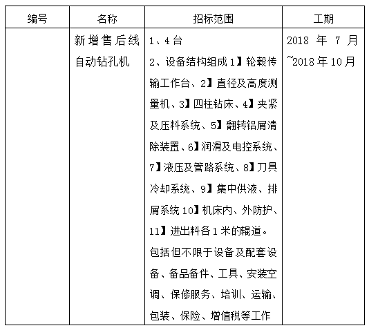 大亚车轮制造有限公司新增售后线自动钻孔机项目招标公告