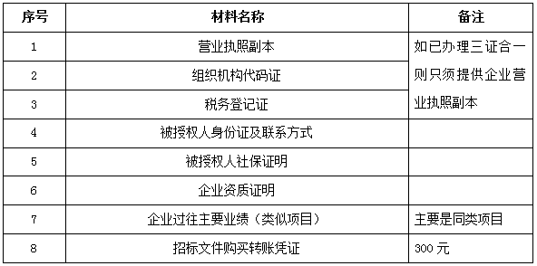 2、 凡有意向参加投标者,请在上述期间内按下表提供报名资料,相关证明文件的原件如无法提供原件则提供复印件加盖公司公章,投标人须将上述资料的扫描件发邮件至招标联系人处进行报名。