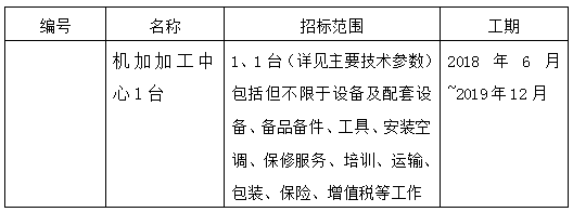 项目名称:机加加工中心1台