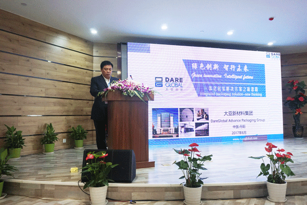 尤其值得一提的是,江苏大亚新型包装材料有限公司总经理张德林为在座的嘉宾介绍了大亚新材料的发展历程、基本背景、销售情况、技术实力与战略合作伙伴,同时从大亚新材料自身视角来做详细的SWOT分析,针对优势、劣势、机遇与不足,张总提出了一体化包装解决方案之新思路。未来大亚将以“绿色创新,智行未来”为目标愿景,追求卓越、挑战极限、创新发展、敢于担当。