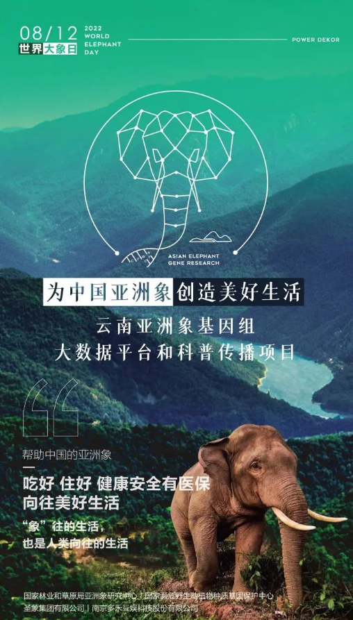 同时,圣象集团还着手与国家林业和草原局亚洲象研究中心、国家濒危野生动植物种质基因保护中心等机构共同开展深度的系统性保护项目。