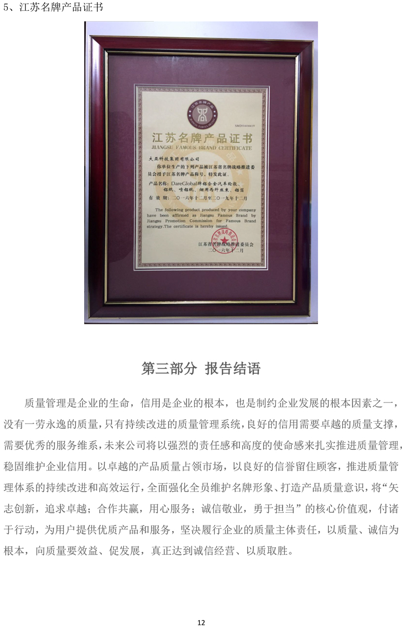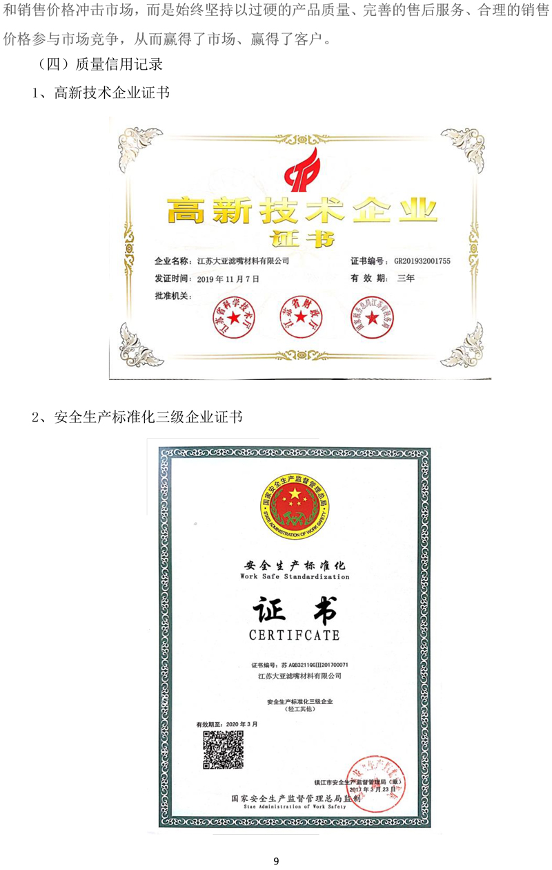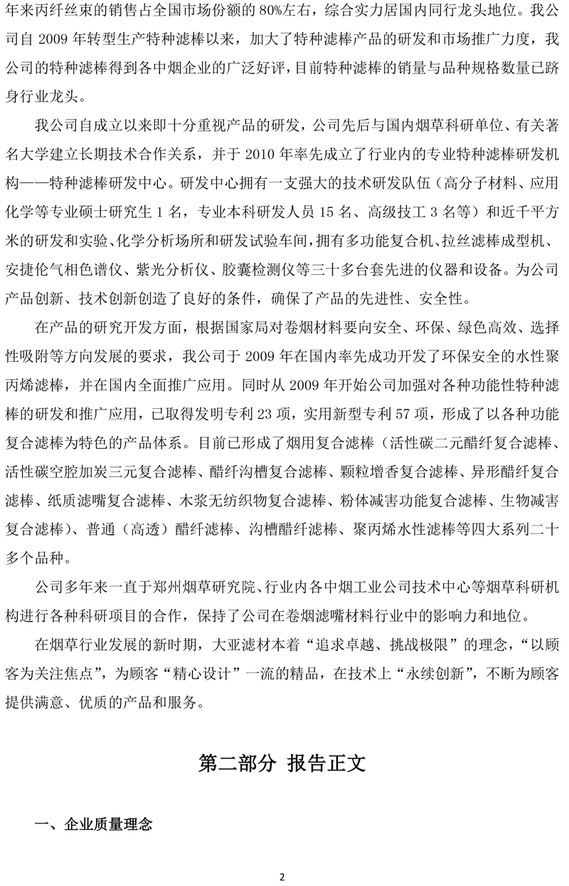 江苏大亚滤嘴材料有限公司企业质量信用报告